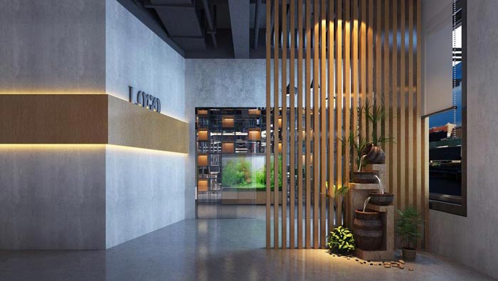 前臺(tái)空間的設(shè)計(jì),設(shè)計(jì)師在設(shè)計(jì)的時(shí)候,省略了前臺(tái)的設(shè)計(jì),設(shè)計(jì)師認(rèn)為在這樣的空間中,設(shè)置前臺(tái)對(duì)于空間來說是一種負(fù)擔(dān),最后設(shè)計(jì)師以泉水流淌不息的藝術(shù)作品,來表現(xiàn)企業(yè)生生不息的企業(yè)屬性。