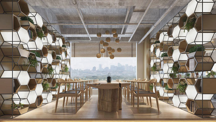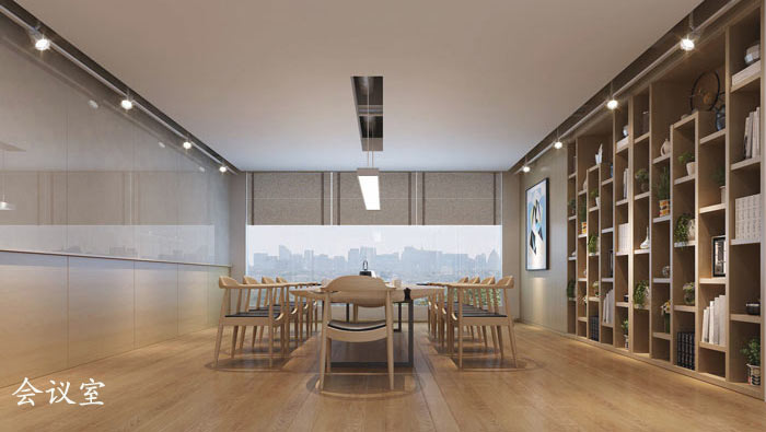 小型會議室的設計:設計師在設計的時候,采用了與接待區域類似的設計,設計師希望為會議室提供更多自然的元素,讓大家在此地可以保持靜心與難得的寧靜,為企業的發展出謀劃策,讓自己的價值在此處得到肯定。