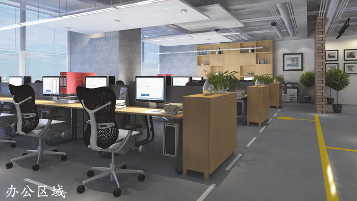 辦公區域的設計:設計師在設計的時候,由于是開放式的辦公空間,故此設計師在設計的時候,采用地標來劃分每個區域的勢力范圍,由此企業內部的各部門得以劃分,一個小小的創意一來為裝修節約了成本,另一方面為辦公空間預留了足夠的活動空間。