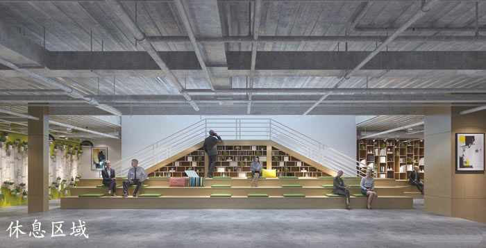 休息區域的設計:設計師在設計的時候,采用階梯的方式對空間進行設計,在設計師看來不管在生活還是在工作,人都像是在走階梯一般不斷的成長,故此設計師希望讓員工在此處休息、交流的同時,可以回味過去、不斷的總結自己,以求盡快邁入成長的階梯,成長自己促進企業發展。