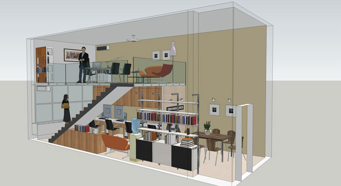本次辦公室實際面積只有將近50平方,設(shè)計師為了滿足企業(yè)的需求與空間的格局劃分,最后采用LOFT風格對空間進行設(shè)計。