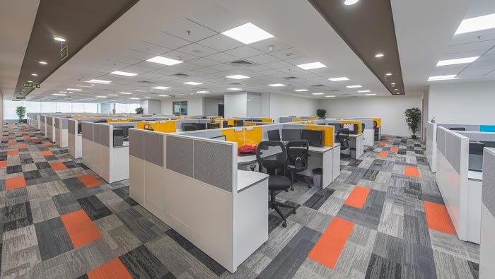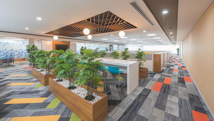 辦公區域的設計:設計師在設計的時候,反思了開放式空間與私人空間的優點與缺點,在反思的過程中加入了企業的屬性,在不斷的思考中設計師得到啟發,采用開放式包圍個體空間、個體空間連接開放空間的雙重設計手法,這樣既可以消除開放式空間的缺點又可以為每一個員工保留私人的辦公空間。