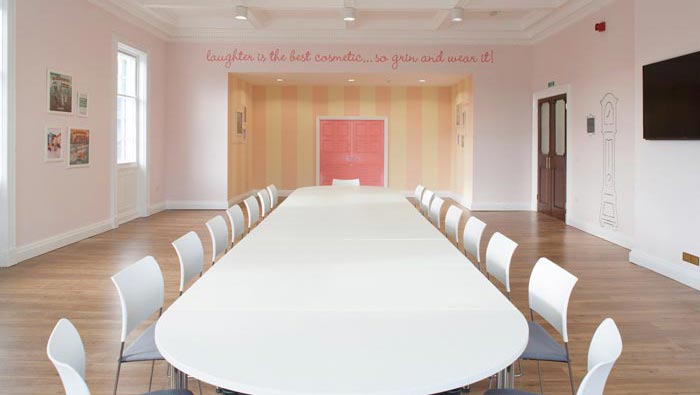 本次為化妝品公司辦公室裝修設計項目,設計師在于客戶交流的過程中,不斷聽到客戶對于“笑”的理解,因為在客戶看來笑容是最好的化妝品,正所謂笑一笑十年少,設計師也是女性,因此受到感染最為直接,故此設計師在設計中以熱情、創造、革新為驅動力,以求打造出與企業理念相融的辦公格局。