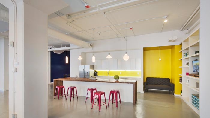 茶水間的設(shè)計(jì):茶水柜前方有一個(gè)加長型的吧臺,足可以坐下企業(yè)大部分人,這樣設(shè)計(jì)的目的就是讓員工坐在一起討論、溝通、交流,空間在格局設(shè)計(jì)上把握的也很好,墻體包圍內(nèi)部空間,橢圓形過道包圍吧臺,環(huán)環(huán)相扣,在使用和留白之間達(dá)到相對的平衡。