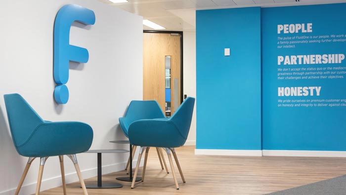 前臺(tái)的設(shè)計(jì):設(shè)計(jì)師考察過(guò)實(shí)地之后,對(duì)前臺(tái)有了一個(gè)不同的想法,因?yàn)樵谠O(shè)計(jì)師看來(lái)此處適合采用去前臺(tái)的設(shè)計(jì)模式,因?yàn)榭臻g面積十分有限且有轉(zhuǎn)彎,設(shè)計(jì)師與客戶做了詳細(xì)的匯報(bào),客戶也接受了設(shè)計(jì)師的建議,就是化不利為有利,在空間盡頭打磨出一處品牌展示區(qū),這讓客戶進(jìn)入后對(duì)企業(yè)的理念有一個(gè)直觀的認(rèn)識(shí),就是人、合作、誠(chéng)實(shí)。