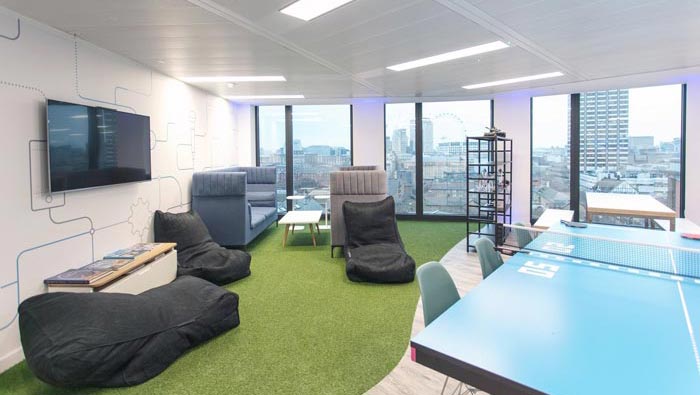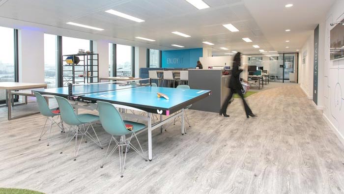 娛樂(lè)區(qū)域的設(shè)計(jì):此處位于辦公區(qū)域的后方,這樣設(shè)計(jì)的目的就是為了調(diào)動(dòng)員工的激情,因?yàn)閿?shù)據(jù)本身沒(méi)有作用,但是人與數(shù)據(jù)聯(lián)合之后就有了翻天覆地的作用,以此可以看出人與數(shù)據(jù)缺一不可,這也就是設(shè)計(jì)師以人為本設(shè)計(jì)理念的展現(xiàn),設(shè)計(jì)師就是希望通過(guò)激發(fā)員工的興趣,以此保持企業(yè)的創(chuàng)意理念得以繼承。