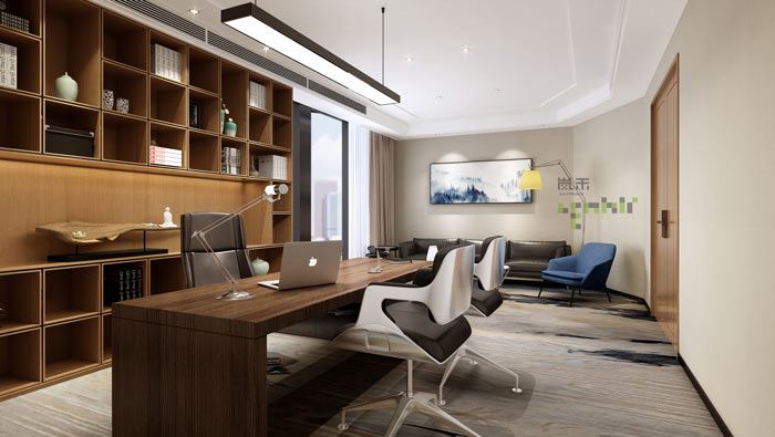 時尚總經(jīng)理辦公室設計:在總經(jīng)理辦公室設計中,設計師兼顧了個人與整體之間的關系,在個人上設計師契合了總經(jīng)理本人的氣質(zhì),整體上設計師契合了辦公室的設計。