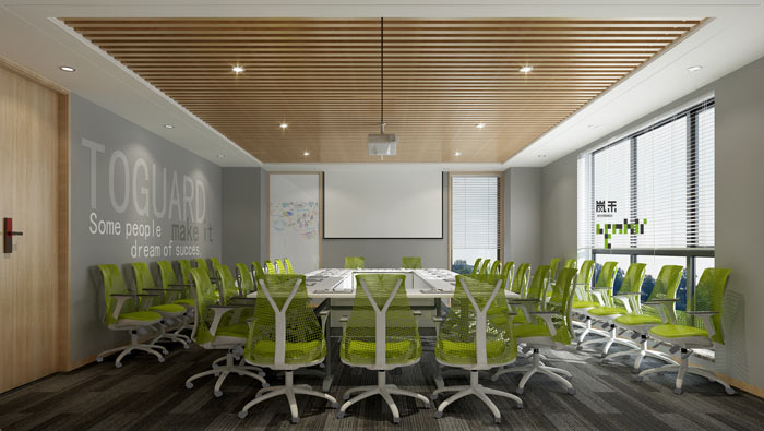 科技公司辦公室接待室設計:這里是企業接待客戶的地方,這里的氛圍非常正式,這表明了企業重視每一個客戶,通過這種重視讓客戶感受到來自企業的尊重。