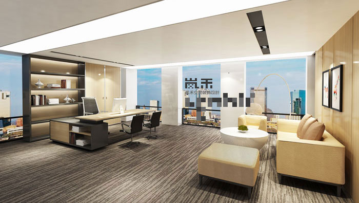 董事長辦公室的設(shè)計,設(shè)計師為了統(tǒng)一的風(fēng)格,最后將風(fēng)格總結(jié)為六個字:大氣、簡約、時尚,另外在其中設(shè)計師加入了運籌帷幄的元素,讓董事長可以在辦公室中鎮(zhèn)守公司財運。