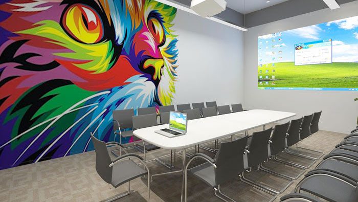 會議室的設計,最大的亮點就是墻壁上五顏六色的貓,其寓意就是——好奇心,好奇心越重,生存能力越強,這樣員工在不斷探索中,獲取了更多的知識來應對商業環境的變化。