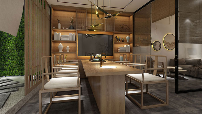 本次為中式工作室裝修設計效果圖,辦公室設計面積150平方,由于辦公室的面積有限,故此設計師在設計中,以實用、簡潔、中式為辦公室設計關鍵詞,目的就是打造一個實用的辦公空間。