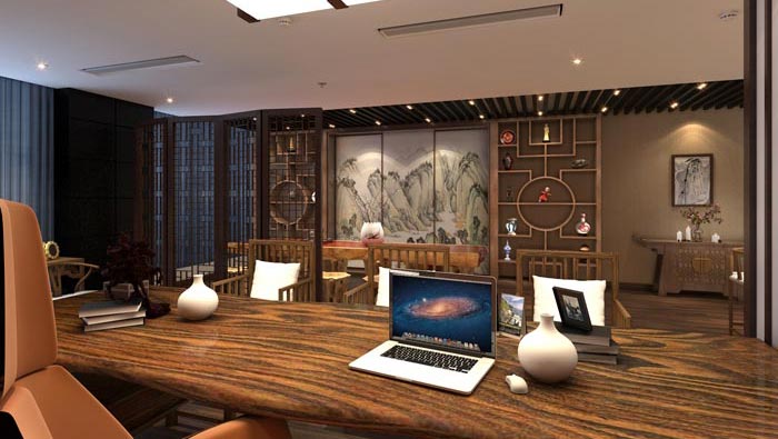 董事長辦公室的設計:此處不常用但是確實企業的面子所在,因為董事長是企業的代表、是企業的形象所在,此處一般不對外界開放,目的就是希望為董事長營造一個寧靜、溫馨的個人空間,但是對于董事長的朋友來說卻是不在其列,故此設計的寓意在此處尤為重要。