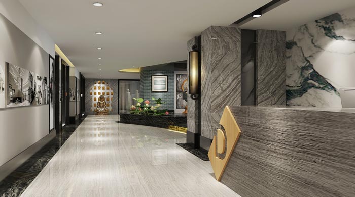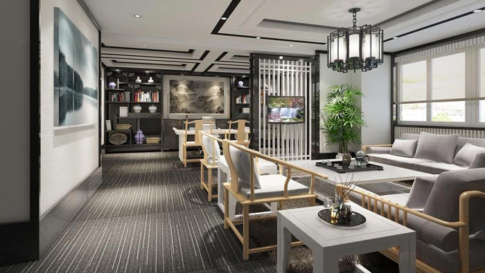 本次項目為控股公司總部辦公室裝修設計,設計師首先要做的就是與客戶進行了初步的交流,在交流的過程中設計師了解到客戶希望設計可以采用新中式,設計師在對空間實地考察之后決定在新中式風格中加入禪意風,目的就是希望給人以空靈之感、禪意之意境,做到實與虛之間的相互協調。