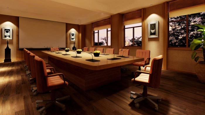 會議室的設計:此處融合了中式風格的穩重、簡約風格的化繁為簡、暖色系的溫馨舒適,在燈光的設計上采用了中式含蓄的作法,將燈光都精準的定位于某一個區域,目的就是為了避免燈光對人造成影響,希望通過精準的定位燈光,既保證空間的照明有讓人可以靜下心來。