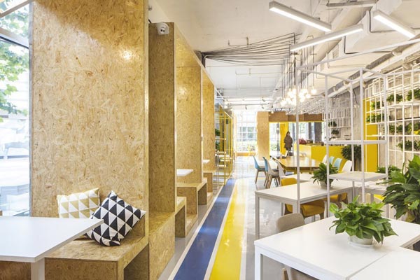 動線的設計:設計師在設計的時候,將白、黃、藍做為一種標示,一來有引導的作用、二來有劃分空間的作用,同時對于墻體的設計,設計師也是不與余力,設計師的目的就是希望將每一個部位都發揮到極致。