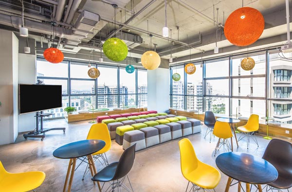 休息區域的設計:設計師在設計的時候,重點挖掘了軟裝的發展,在設計師看來軟裝是空間裝扮的重點,同時軟裝的優勢就是可分可和,分則為企業留下了巨大的活動空間,合則為企業打造優質的休息空間。