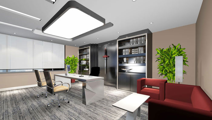 總經(jīng)理辦公室的設(shè)計(jì),白色的辦公區(qū)域給人的感覺就是簡(jiǎn)潔、明快,富有現(xiàn)代感,深紅色的接待區(qū)域?yàn)榭臻g帶來(lái)穩(wěn)重、成熟的空間屬性,綠植的設(shè)計(jì)為一方面為空間增加活力,另一方面為空間增加一絲涼意。