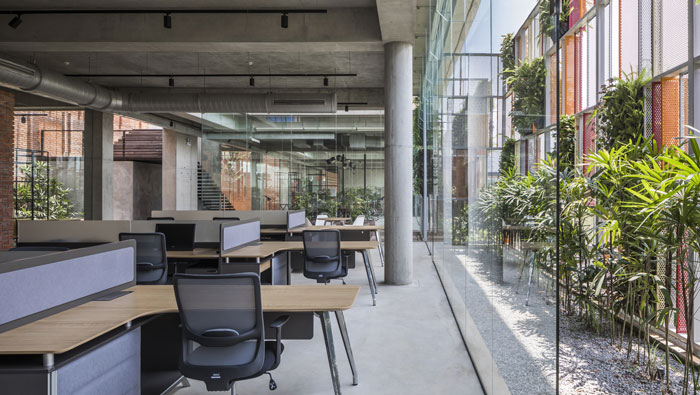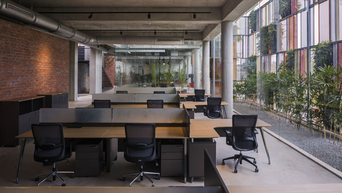本次為工廠辦公大樓辦公室裝修設計效果圖,辦公室設計面積4000平方,設計師在辦公室設計中,以現(xiàn)場環(huán)境保持一致為前提,目的就是打造一個融合與廠房的辦公樓,而不是一個獨立的裝飾。