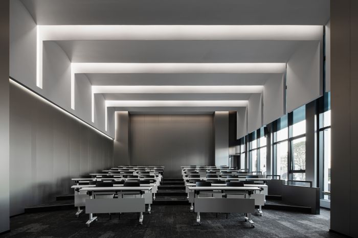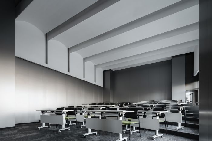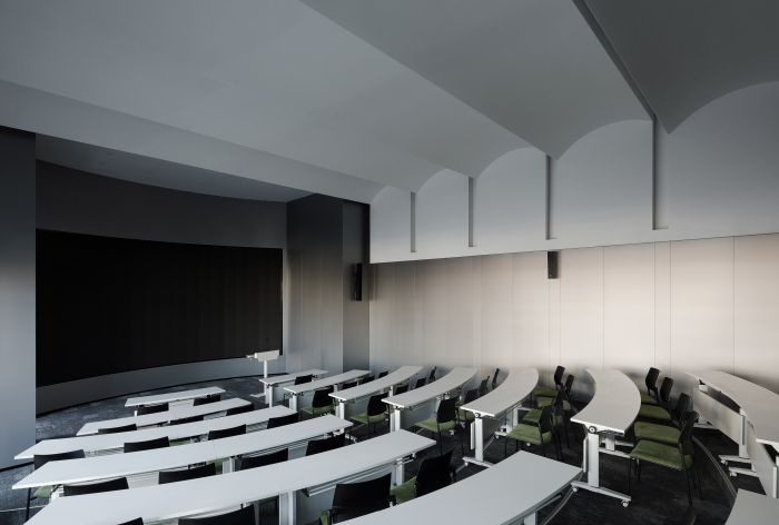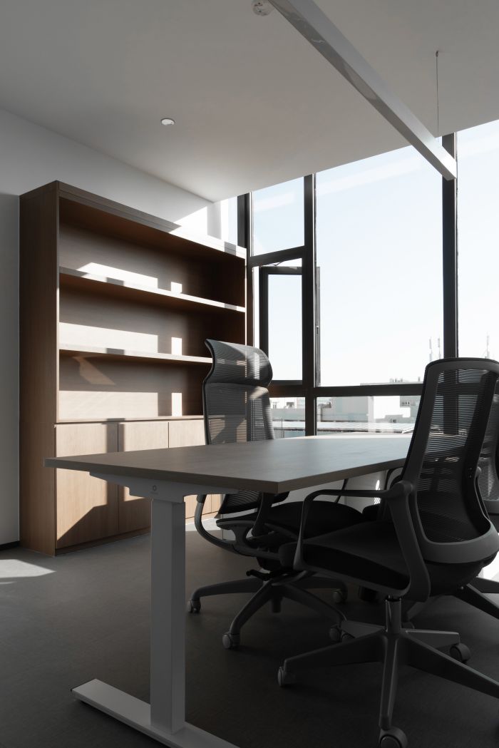 蘭天機械的園區主要分為廠區、宿舍樓和綜合辦公樓。綜合辦公樓共有九層,涵蓋企業接待、日常辦公、會議、健身休閑等多項功能。每層樓都有不同的布局和功能。第一層主要是接待大廳和大報告廳,提供高效的會議和商務接待服務;第二至四層則是設有大型會議室和健身房、閱讀室、母嬰室等多功能場所,可供員工休閑和活動使用;第五至八層則是辦公區域,分為多個辦公單元,為企業各職能部門提供適合的辦公空間。整座辦公樓不僅具有高品質的設施和服務,而且也為員工提供了舒適的工作環境,是一個充滿活力和創新的辦公空間。