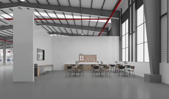 我們受到邀請對園區的門廳、餐廳、廠區和幾個獨立辦公室和接待空間做了設計。