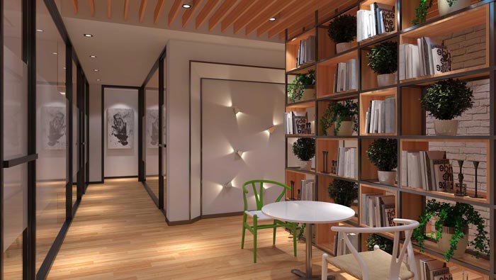 接待區域的設計,設計師在設計的時候,將其安置在辦公室區域的一側,整個空間按照4:6的比例對空間進行分離,4分為辦公區域、6分為接待區域、休息區域、動線的結合,這樣的設計將室內的空間有效的、合理的結合并加以利用。