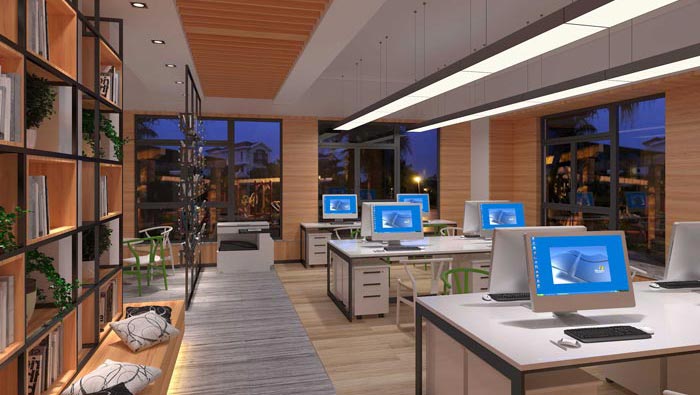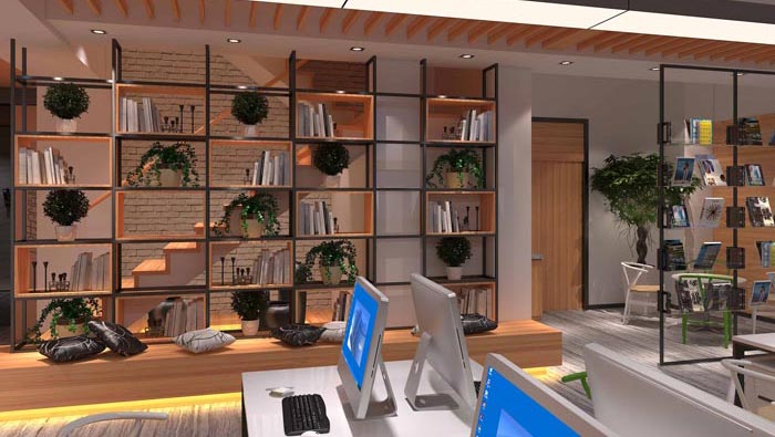 前臺的設計,設計師在設計的時候,摒棄了過去非要前臺的窘境,設計師認為前臺的設計需要根據企業與建筑本身做出適當的調整,本次取消前臺,一方面對于企業品牌的展現有非常好的有點,另一方面這樣的設計縮減了客戶與企業之間的關系。