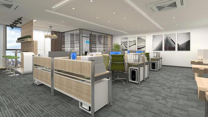 辦公區域的設計,設計師在設計的時候,將其安置在空間的中心區域,這樣的設計一方面可以保證動線與動線的聯系更加暢通,另一方面這樣的設計利用員工之間的相互溝通與交流。