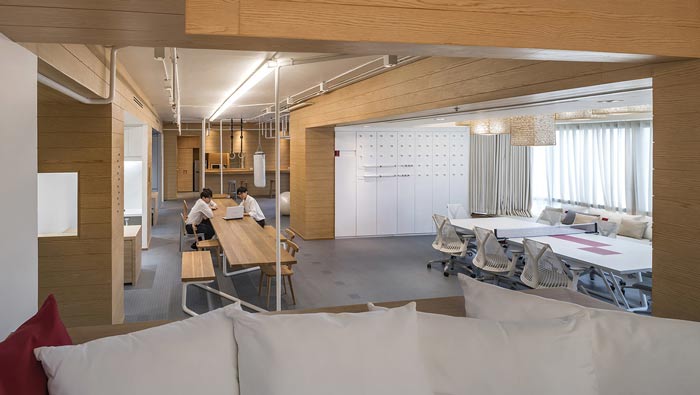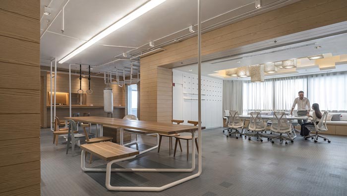 IT公司辦公室辦公區設計:固定辦公區與活動辦公區相鄰而處,這樣的布局方式就是希望讓員工有多個辦公區域,辦公區不固定在一起,就是希望讓員工自己主導自己的工作,這樣的辦公效率事半功倍。
