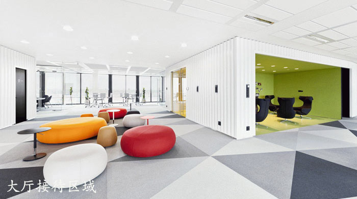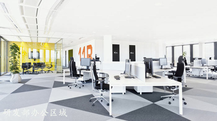 研發部與創意部的設計,設計師在設計的時候,希望打造一個創意無限的辦公空間,整個空間以不規則的排列方式對空間進行設計,不規則本身就是一種平衡,設計師希望通過這種不規則的精神來激發員工的創新精神。