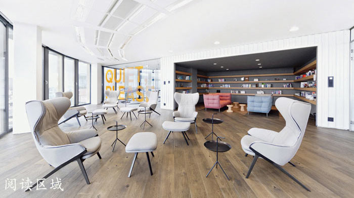 閱讀區域的設計,設計師在設計的時候,以溫馨與愜意為基本設計原則,在設計師看來人才是企業發展的重要階梯,而學習是人才更進一步的成長捷徑,設計師希望企業與員工之間相輔相成,在各自的幫助下成長、壯大。