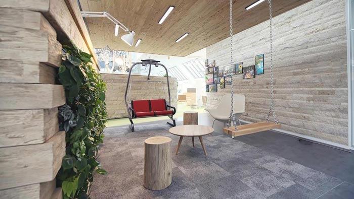 娛樂區域的設計:這樣的設計在空間中還有幾個,分別為臺球區、秋千區、游戲區,不管游戲的規則如何改變,但讓員工放松的初心沒有變,這樣的空間就是打開員工憂郁的心房,讓員工可以在工作之余,盡享生活的美好,讓員工在游戲中感受到團隊的溫暖,同時增加企業內部的向心力。