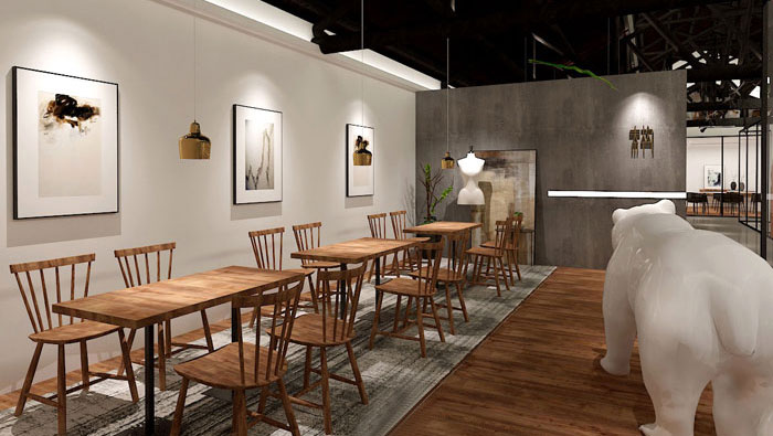 前臺、吧臺、展覽區被設計師融合在一起,成為一個新形的前臺的設計,在同時保持了整體設計的統一性,營造出一個溫暖明亮的前臺空間。
