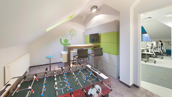 辦公工位的設計:設計師在設計的時候,在主體上采用的是開放式的設計,在開放式的主體之下采用的是相對獨立的隔離設計,設計師希望在整體上讓員工感受不到任何的束縛,縮短彼此之間的交流障礙,在細節上為員工打造一個獨立的辦公空間,讓員工可以有自己的小世界。
