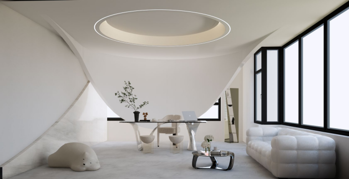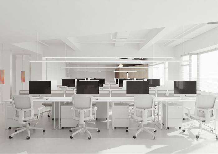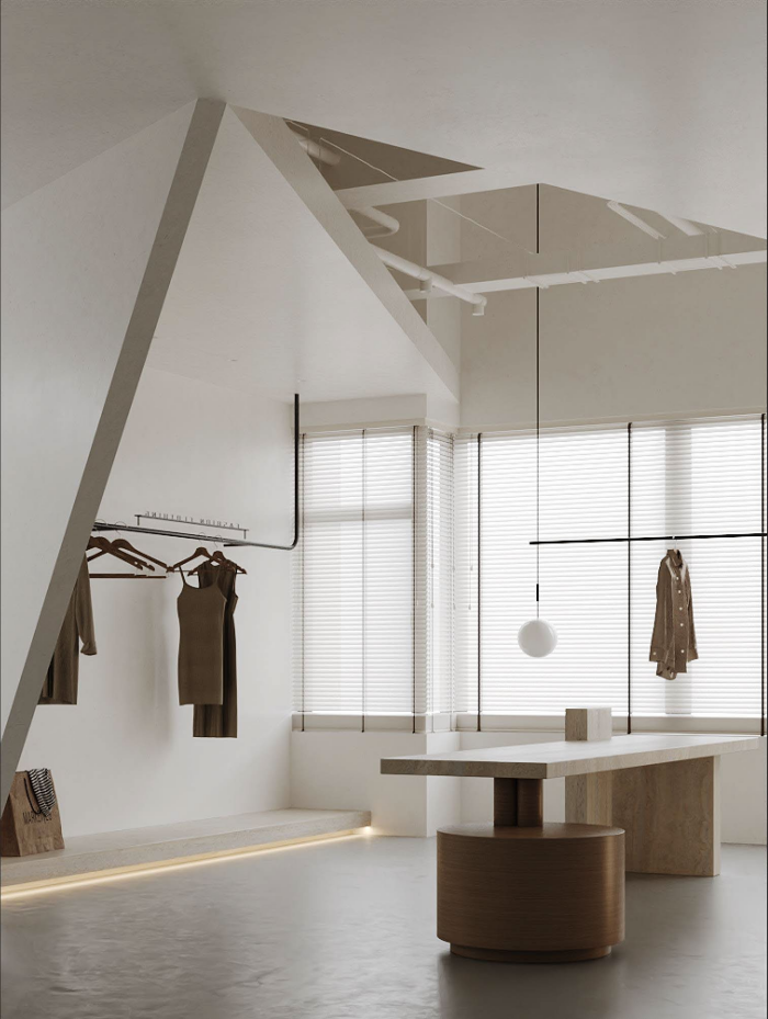 這是一個我們設計的服裝公司的辦公空間,空間有1200方的面積。空間包括前臺,辦公區,服裝展示區,獨立辦公室和多間直播間和倉庫發貨區組成。