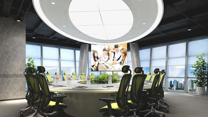 會議室的設計:設計師在設計的時候,與業主又一次進行了詳細的交流,最后決定將會議室安置在陽臺區域,一方面陽臺區域面積夠大,另一方面陽臺區域的采光夠好,設計師希望為企業打造一個創意、活力無限的會議空間,為企業的發展提供重要的源泉。