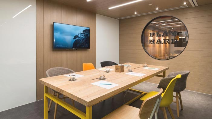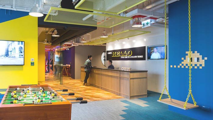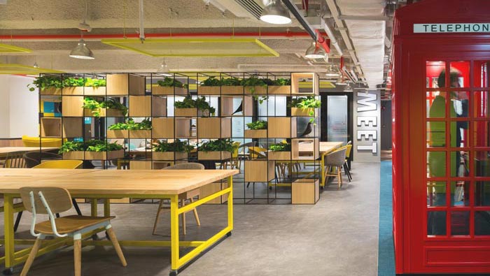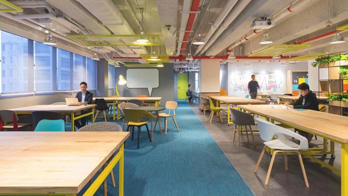 辦公區域的設計:設計師在設計的時候,將開放式空間的開發與設計進行到極致,設計師省略了辦公桌的使用,而是使用了最簡單、最原始的長方形桌子,這樣的設計使空間的一切都是如此的返璞歸真,員工在這樣的環境下辦公真是羨煞旁人。