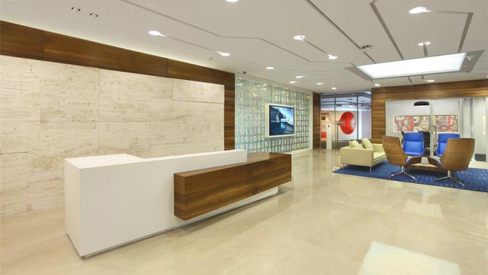 前臺(tái)區(qū)域的設(shè)計(jì):設(shè)計(jì)師在設(shè)計(jì)的時(shí)候,將前臺(tái)空間劃分為前臺(tái)、接待、動(dòng)線,在設(shè)計(jì)師看來(lái)前臺(tái)以極簡(jiǎn)進(jìn)行表現(xiàn)與設(shè)計(jì),這樣可以使客戶在第一時(shí)間清晰了解企業(yè)的屬性,同時(shí)接待區(qū)的設(shè)計(jì)以溫馨、舒適為原則,在細(xì)節(jié)上體現(xiàn)企業(yè)以人文本的原則,動(dòng)線將各個(gè)空間相互連通,起到橋梁的作用。