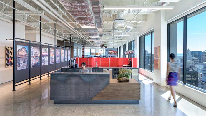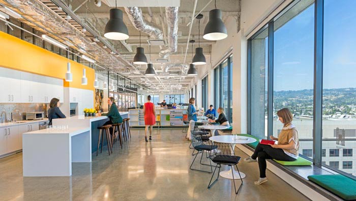 茶水間的設(shè)計:設(shè)計師在設(shè)計的時候,將其與休息區(qū)域、交流區(qū)域融合在一起,形成一個巨大的融合空間,在此處可以說是員工的一個樂園,在此處員工可以談笑風(fēng)聲、可以大聲說話、可以眺望遠方、可以與同伴進行嬉戲,讓企業(yè)內(nèi)部更加團結(jié)。