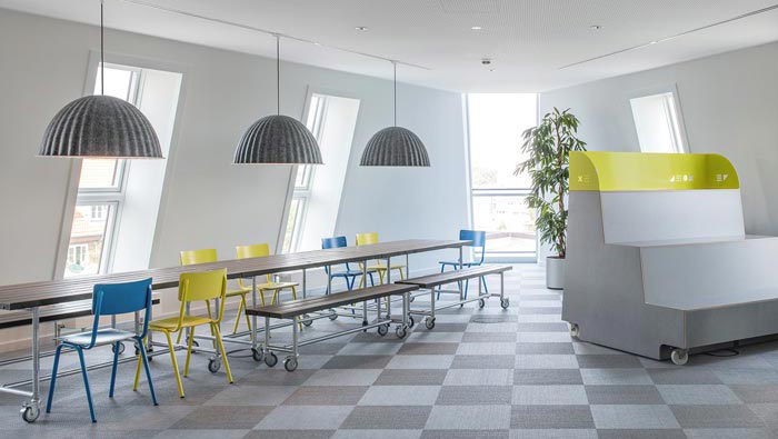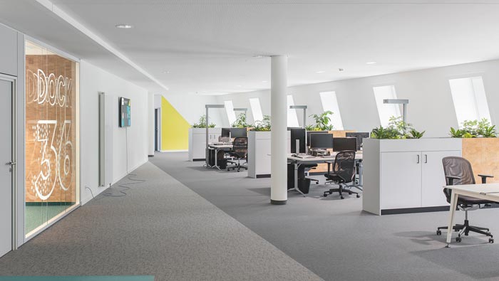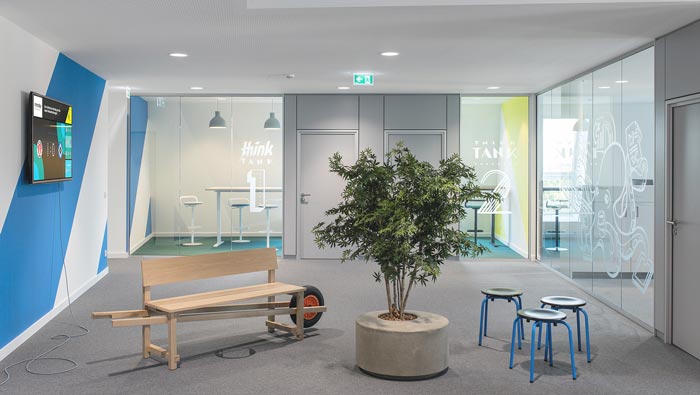 活動空間的設計:此處的活動是指空間的活躍性,此處是脫離于企業之間的空間,此地很好的起到了互補的作用,這也正是此處空間預留下來的原因,哪里需要就可以臨時組成那個空間,在不需要的時候可以做為一個中轉站來使用,在此地不規則的擺放反而將此地映襯的頗有活力。