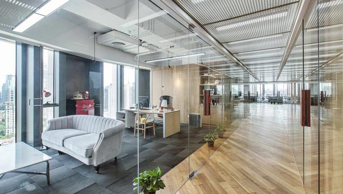 董事長辦公室的設計:設計師在設計的時候,與董事長進行了深入的交流,通過交流了解到董事長喜歡安靜與寧靜,這也就是設計師將此處安置在空間深處的原因,同時此處的視野也極好,讓董事長在辦公之余可以俯視與欣賞到整個外部美景,以此在不知不覺中提升董事長本人的視野。