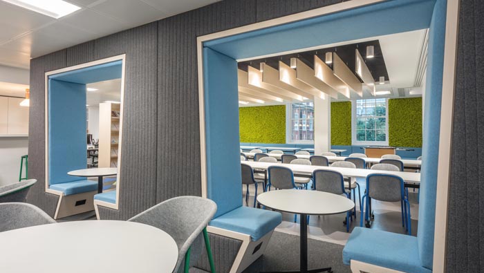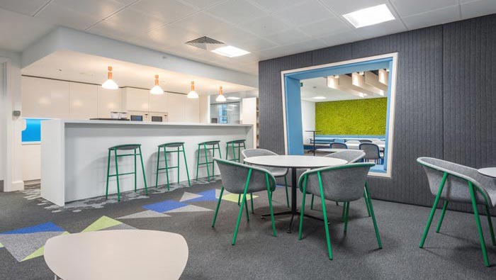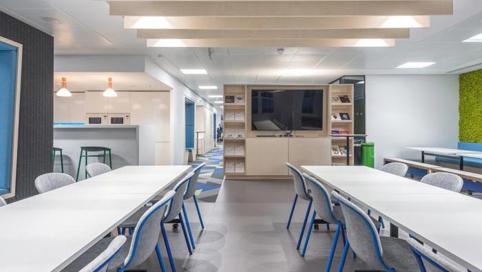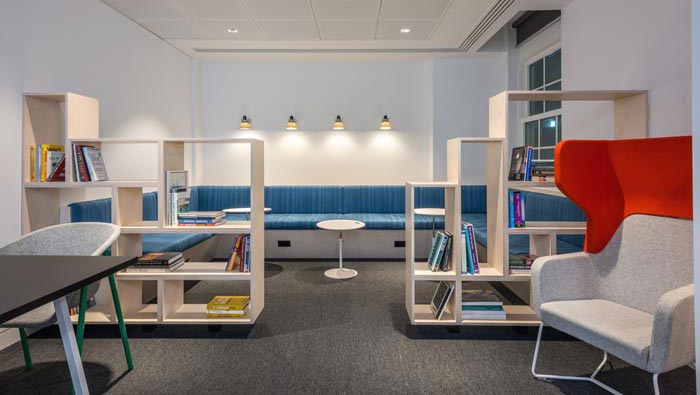 休息區域的設計:設計師在設計的時候,想要為員工打造一個集合休息與學習的空間,在設計師看來員工需要的不僅僅是休息,更需要的是一個交流的場所,在此間讓員工可以無憂無慮進行學習與相互討論,讓員工在此間不斷成長與突破。