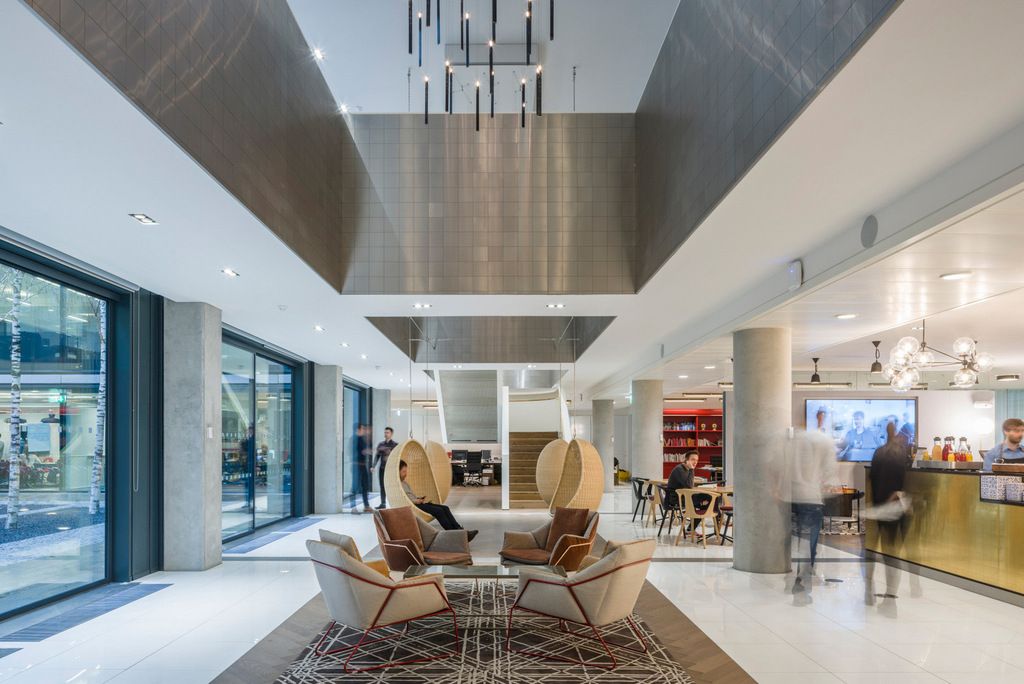 接待區的目的是要反映一個更開放和合作的工作空間,而不是封閉的歡迎更傳統的辦公室,一個中央酒吧和咖啡廳區占主導的入口空間。跳躍式工作室擺脫了該機構更多的細胞化和分區化的感覺,設計了一個非正式、時尚、實用的開放式規劃空間。