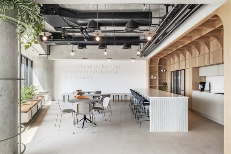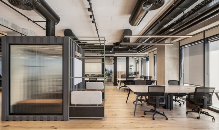 大部分辦公空間都是干凈開放的,讓在那里工作的人員自己發揮想象力,但整個設計中還是有一些奇思妙想。一個這樣的例子是位于共同工作空間中心的私人會議艙,其特點是復古的展位布局和外部的“On Air”燈,以顯示何時使用。像這樣的細節可以在整個空間找到,但從來沒有壓倒或分散注意力。