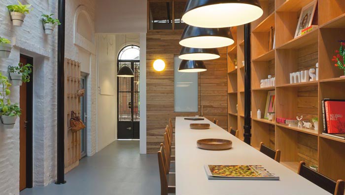 辦公室內(nèi)外空間的設(shè)計(jì):在此處可以清晰的看出整個(gè)空間,所表現(xiàn)出來(lái)的已經(jīng)是和諧和清新,和諧是不希望已經(jīng)設(shè)計(jì)的突兀影響到客戶的創(chuàng)作,清新是因?yàn)閯?chuàng)作是艱難的、漫長(zhǎng)的,故此一個(gè)好的心情十分重要,在設(shè)計(jì)師的眼中沒(méi)有什么比得上自然更讓人能夠擁有好的心情。