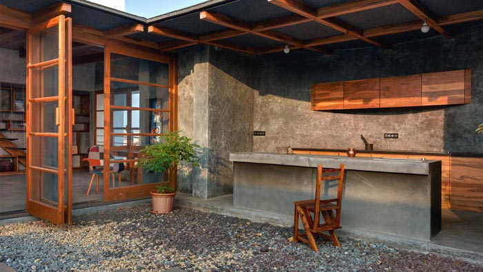 本次為私人攝影工作室裝修設(shè)計(jì)項(xiàng)目,空間是一個(gè)復(fù)式格局,在實(shí)地考察的時(shí)候,設(shè)計(jì)師與客戶(hù)之間也進(jìn)行了初步的交流,在交流中設(shè)計(jì)師了解到,客戶(hù)希望打造一個(gè)室外與室內(nèi)相結(jié)合的空間,由于攝影的需要,對(duì)于采光的要求也十分高,最后設(shè)計(jì)師的方案就是將其打造成一個(gè)混合的屋頂花園。