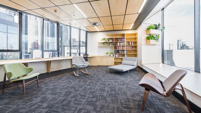 節能公司辦公室觀景臺設計:此處的陽光最為濃烈,也是空間中不可多得的觀景區域,當辦公勞累的時候,大家可以去陽臺展望一下都市的美景,伸伸懶腰、曬曬太陽,也不失為一種享受。