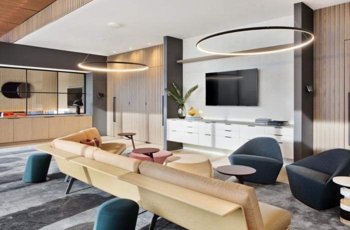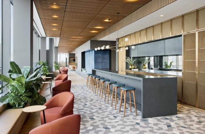 這次帶來的是金融計劃創意辦公室設計案例,空間面積1200平方米,豐富而充滿活力的環境中,其靈感來自創新、連接和創造性合作的歷史精神,這種精神長期以來一直是創意的主流。 使用定制和復古家具,內部反映了使用這個工作空間的新興創意。這三個會議室最多可容納200人,可以連接起來形成一個大型市政廳區域,非常適合協作工作環境。休息時,房客可以享受靠窗座位的休息區和俯瞰城市的酒吧。