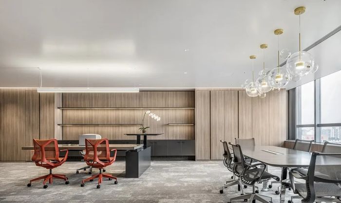 這是一家投資公司的總部辦公室,空間有2000方的面積。空間的設(shè)計(jì)主題為“雅”、“靜”、“潤(rùn)”,設(shè)計(jì)師創(chuàng)造了一個(gè)能讓訪客和員工感到寧?kù)o、優(yōu)雅,并愿意停留的舒適環(huán)境。