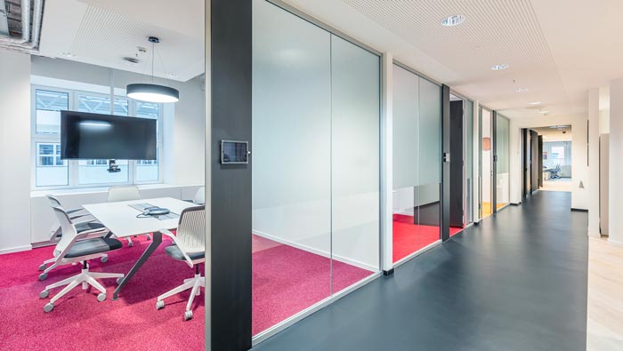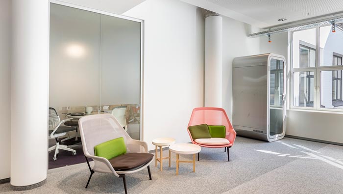 會議室的設計:企業的文化就是任何問題都在內部解決,所以對于會議室就有很高的要求,此處僅為空間的冰山一角,設計師利用了一個小小的物件——轱轆,就讓整個空間擁有了活性,空間可以根據需求自主的形成每一個形狀,一切都是可操作性的,代行會議室只需要將桌子進行重組就可以,方便又便捷。