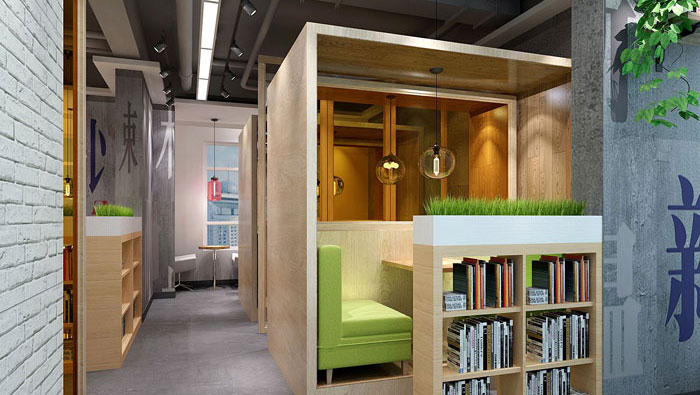 閱讀區域的設計,設計師首先追求一種寧靜的感覺,同時以過道為延伸,在配合特殊的燈光效果,為整個空間增添玩味。